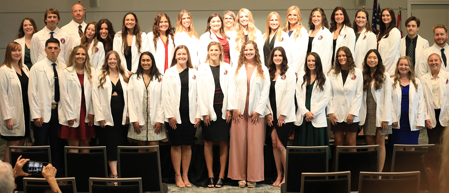 Drury University hosted its inaugural Physician Assistant (PA) White Coat Ceremony on Saturday, Sept.14 at the O’Reilly Enterprise Center in the Judy Thompson Executive Conference Center. The ceremony marked a significant milestone for Drury’s first cohort of PA students as they transitioned from academic study to their future roles in patient care. During the ceremony, students took the Pledge of Professionalism, committing to uphold principles of honesty, dedication, and effective patient care while continually expanding their knowledge and skills.